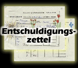 Klingt irgendwie vielversprechend. Doch kann ein Heft Kunst sein? Kunst ist doch was freies und was in Heften steht, kann man sich bekanntlich nur in den seltensten Fällen aussuchen. Auf jeden Fall steht fest: Während sich andere Schüler langweilen, ist der Kunst-LK'ler stets bestens beschäftigt. Brauchen andere mindestens ein Buch und eine Getränkeflasche um die Stunde zu überleben, reicht dem Künstler ein Bleistift. Und wenn dieser dann noch farbig wird, kommen die erstaunlichsten Sachen zu Stande. Fragt man einen Mathematiklehrer, welches Fach wohl das sinnloseste sei, antwortet er bestimmt: Kunst. Oder Ethik. Ethik hat in der Tat nicht viel mit Pythagoras zu tun. Aber einen Strahlensatz kann man in Entschuldigungszettel des Kunst Leistungskurses schon hineininterpretieren, wie die Fotodokumente zeigen: